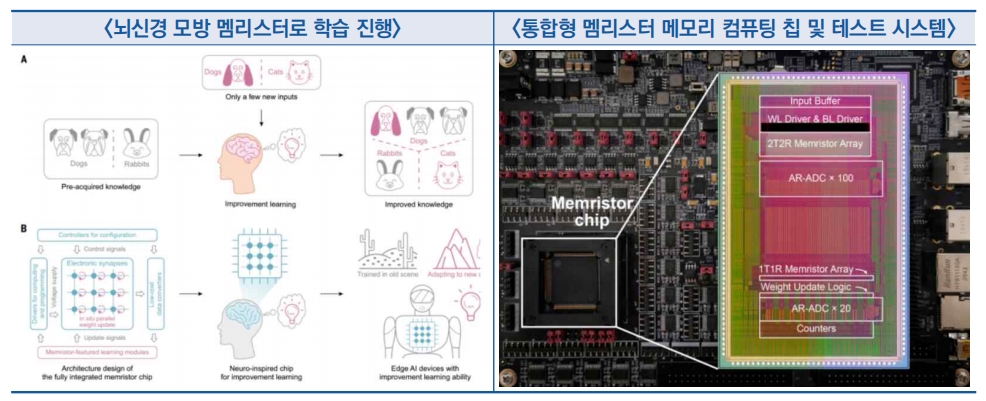 ○ 칭화대학의 우화창(吳華强) 교수 연구진은 뇌모방 기술에 기반해 효율적인 온칩(On-Chip) 학습을 지원할 수 있는 시스템 통합형 멤리스터 메모리 컴퓨팅 칩을 세계 최초로 개발