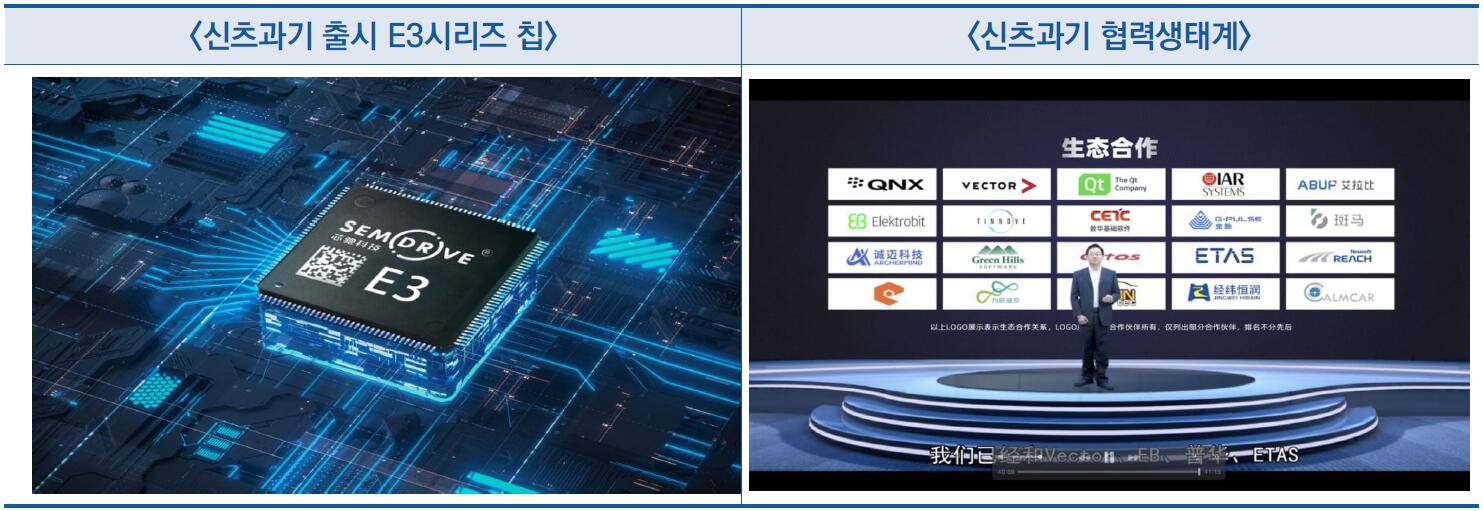 ○ 그중 중국 반도체 업체인 신츠과기(芯驰科技)는 고성능 E3 시리즈 MCU 출시로 자동차용 MCU 칩 시장에서 세계적인 주목을 받음