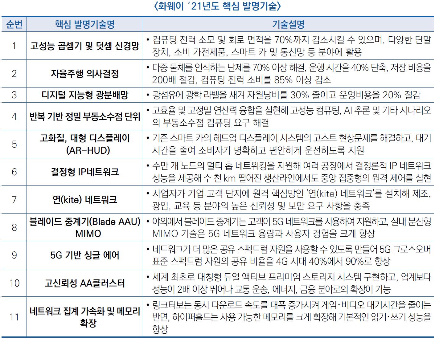 | 화웨이, 2021년도 ‘10대 발명기술’ 발표 | ||