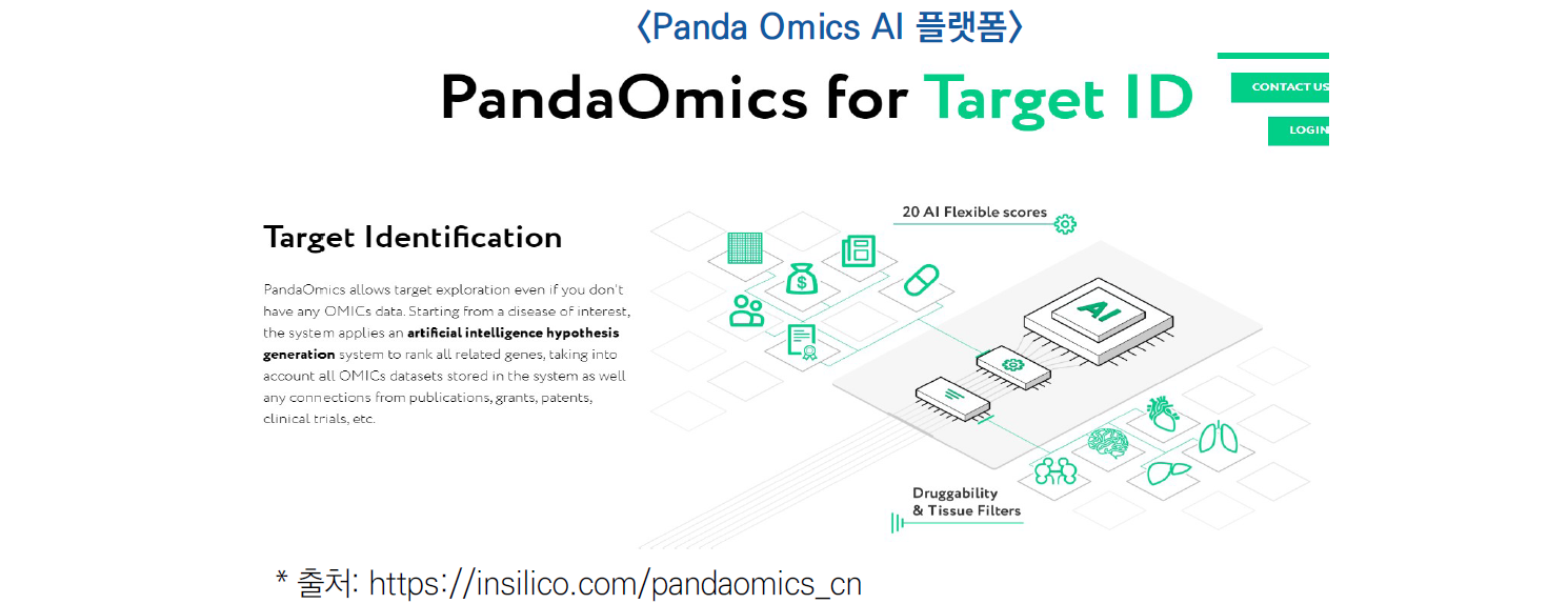 ○ ‘Panda Omics’ 플랫폼은 전사체, 유전체, 후성유전체, 단백체, 단일세포 등을 포함한 500만분의 오믹스데이터 샘플과 임상 1상에서 출시 단계까지의 130만분의 화합물・바이오제제 데이터 보유