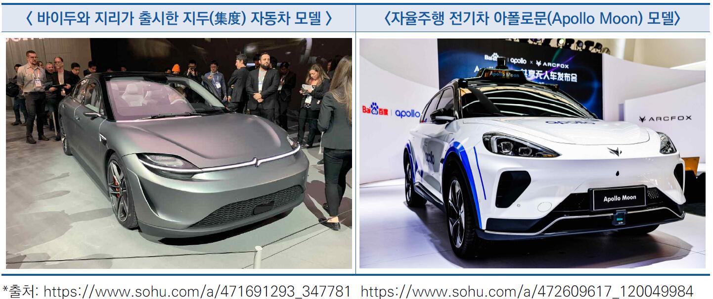 - 지난해 6월에는 베이징자동차그룹의 신에너지차 브랜드 아크폭스(Arcfox)와 협업을 통해 자율주행 전기차 ‘아폴로문(Apollo Moon)’ 생산에 합의
