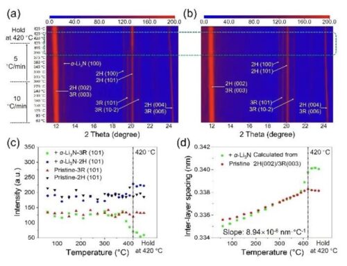 ![]() ![]() 중국과학기술대학교 Zhu Yanwu(朱彥武) 교수 연구팀은 원위치 X선 연구 및 제1원리 계산을 결합하여 3R 흑연에서 2H 흑연으로의 층간 슬립 경로를 제안하고, 동일 영역에서 질화리튬과 접촉하기 전후의 박층 흑연 라만 신호 변화에 대한 연구를 통하여 전하 상태 변화를 확인했다. 관련 연구 성과는 국제학술지 “Nano Letters”에 게재되었다. 흑연은 리튬 이온 배터리 음극, 그래핀 제조 등 분야 중요한 원료로 일반적으로 육각상(2H상)과 능형상(3R상)의 두가지 격자 구조를 포함한다. 그 중, 2H 상은 에너지가 상대적으로 낮고 분말에서 높은 비율을 차지하며, 3R상은 에너지가 상대적으로 높고 분말에서 낮은 비율을 차지한다. 그러나 흑연 입자가 파쇄됨에 따라 시트 직경이 감소하고 3R상의 비율이 점차 증가하여 최대 50%에 달할 수 있다. 최근 연구에 따르면 3R상 흑연 에너지 밴드 구조는 3차원 디락 콘(Dirac cone)을 포함하고, 전자 상태에는 갭이 있으며, 저온에서 전자 수송은 표면 상태에 의해 지배된다. 기존의 흑연 상변화 연구에서는 흑연 분말 중의 3R상을 모두 2H상으로 전환시키기 위해서 고온고압의 흑연화 처리를 수행하거나 레이저 가열, 줄 열 등 방법을 채택하는 경우가 많으며 요구 조건이 까다롭고 에너지 소비가 많다. 연구팀은 흑연 분말에 소량의 질화리튬 결정 분말을 첨가할 경우, 낮은 온도에서 광범위한 시트 지름 크기의 매크로 흑연 분말에서 3R상에서 2H상으로의 완전한 전환을 달성할 수 있음을 발견했다. 해당 조건에서 흑연 상변화 메커니즘은 다음과 같다. 일함수의 차이로 인해 질화리튬 결정 분말이 흑연과 접촉할 때 일부 전자를 흑연의 공액 π 전자구름으로 이동시켜 흑연층 간격이 비정상적으로 증가하여 흑연층 사이의 슬립 에너지 장벽을 크게 줄임으로써 3R상이 보다 온화한 조건에서 2H 상으로 변환할 수 있다. 해당 연구 성과는 흑연 전자구름의 형태를 조절하여 흑연 스택 형태와 특성을 정밀하게 제어할 수 있을 것으로 기대되며, 기타 탄소계 재료의 구조 조절 및 신형 탄소재료 제조를 위한 새로운 아이디어를 제공할 전망이다. 정보출처 : http://digitalpaper.stdaily.com/http_www.kjrb.com/kjrb/html/2021-08/02/content_517845.htm?div=-1 |