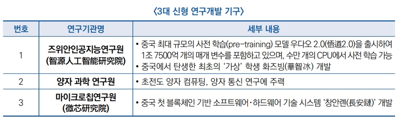 – 중관촌, 창평(昌平), 화이러우(怀柔) 3대 국가실험실 설립, 양자 과학 연구원 등 일련의 신형 연구개발 기구(新型研發機構) 구축 등