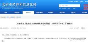 | 베이징시 공업인터넷 발전 행동계획(2018-2020년) | ||