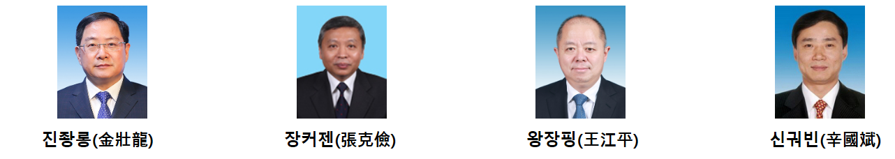 ㅇ (부부장 겸 당조성원) 장커젠(張克儉, 1982년생), 폭발역학 전문가, 국방과기공업국 부국장(‘15), 공업정보화부 부부장 및 국가항천국 국장(‘18) 등 요직 역임