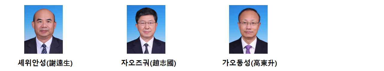 ㅇ (총엔지니어) 자오즈궈(趙志國,1964년생), 정보통신 발전·관리·안전 전문가, 공업정보화부 통신보장국 국장, 공업정보화부 정보통신관리국 국장, 공업정보화부 총엔지니어 등 역임