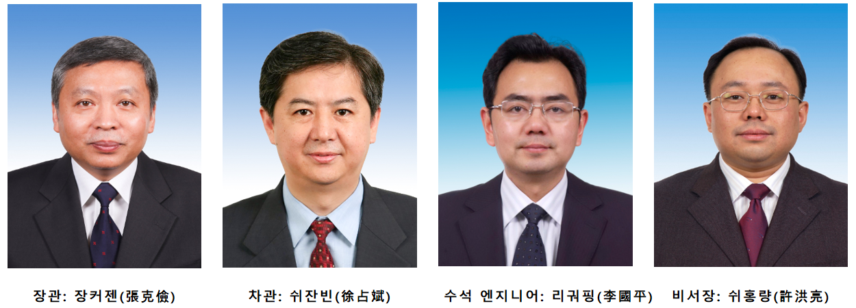ㅇ (수석 엔지니어)리궈핑(李國平,1970), 국가항천국 비서장(‘18),국가국방과기공업국 종합서 서장, 국가항천국 수석 엔지니어, 국제우주항공과학원 원사 등 역임