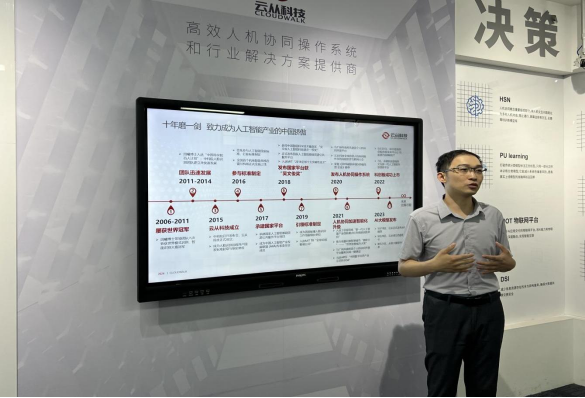 첫 번째 방문한 윈총과기그룹(云从科技集团)은 AI 전문 솔루션 기업이다. 영문명은 CloudWalk Technology로 미국으로부터 제재를 받고 있기도 하는 기업이다. 신강 위구르 자치구의 소수민족 탄압에 이 회사의 기술이 사용되었다는 이유에서이다. 이 회사가 이런 미국 기술 제재의 직접적 대상이 되는데는 그만큼 이 회사의 AI 기술이 위협적이기도 하기 때문이다. 이 회사의 홈 페이지에 들어가 보면 자사의 기술 수준을 중국 1등, 글로벌 3등이라고 평가하고 있다.